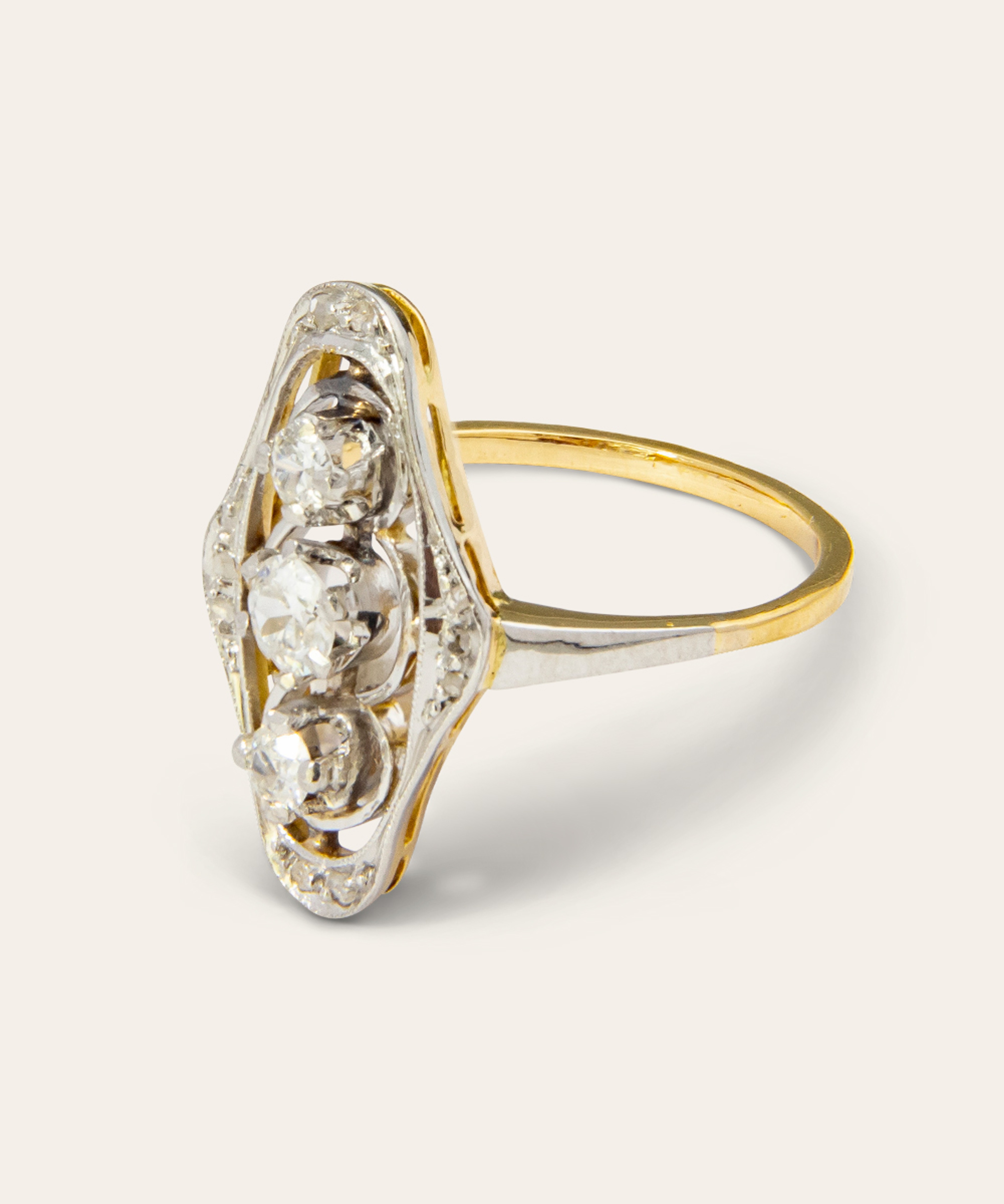 Antique Platinum, Gold, and Diamond Plaque Ring