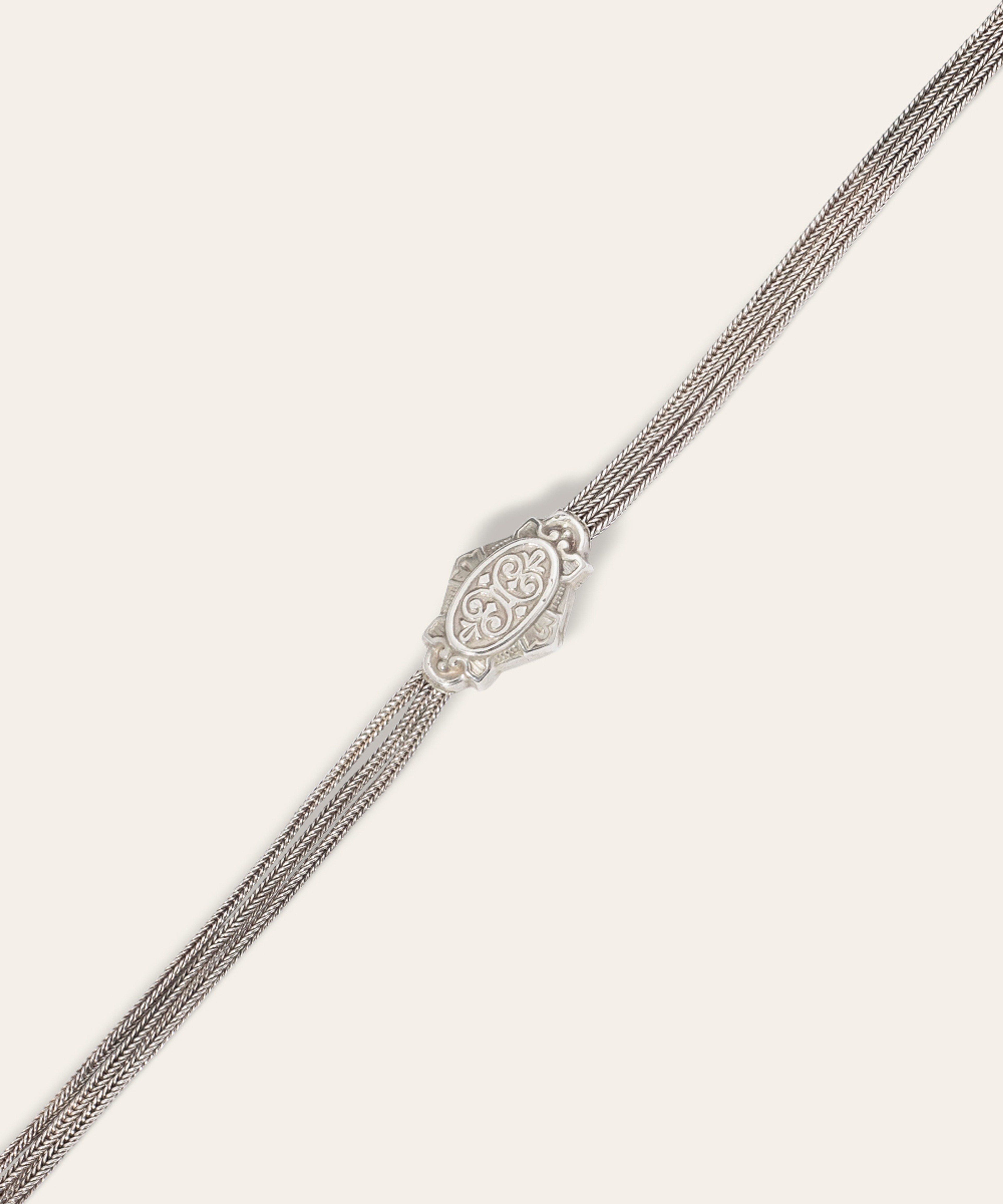 A Victorian Albertina chain bracelet, crafted in sterling silver, featuring two engraved sliders, a tassel, and a T-bar.